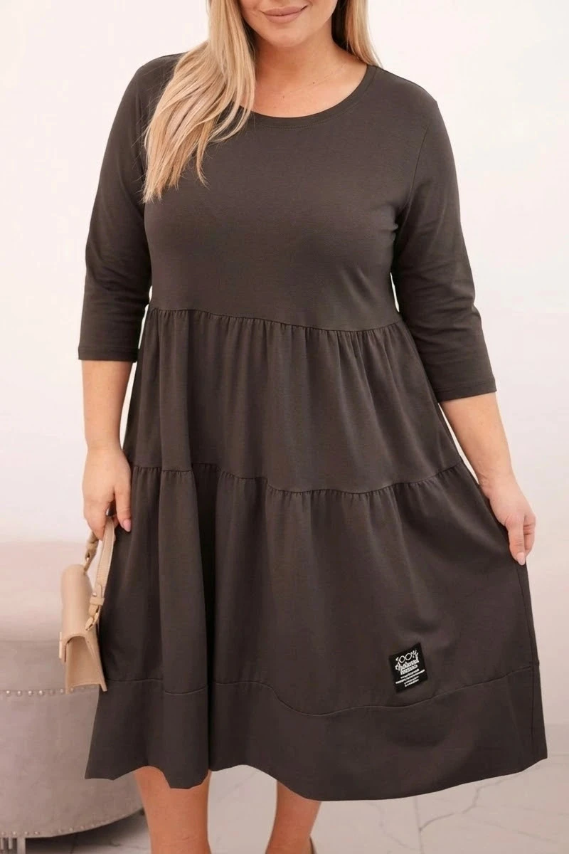 Dámská bavlněná sukni Plus Size s volánky a ohrnutým rukávem hnědá