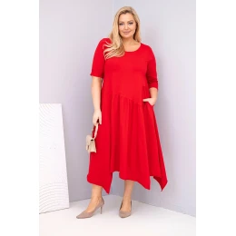 Dámská bavlněná sukýnka Plus Size s asymetrickým spodním okrajem červená