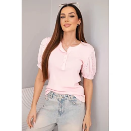 Dámská bavlněná žebrovaná halenka s nadýchaným rukávem a knoflíčky cukrově růžová