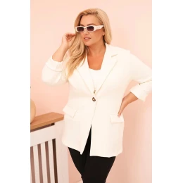 Dámská blazer z viskózy Plus Size s dlouhým rukávem a límcem ecru