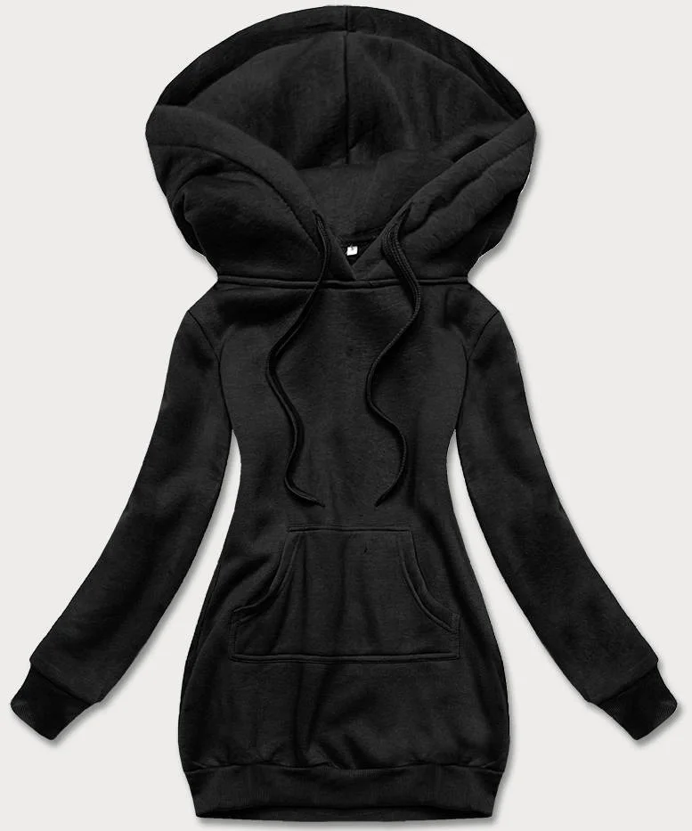 Mikina má volný střih, jednu "klokaní" kapsu a obléká se přes hlavu. Rukávy a spodní okraj modelu jsou olemované stahovacími lemy. Model má délku pod boky.