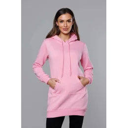 Mikina má volný střih, jednu "klokaní" kapsu a obléká se přes hlavu. Rukávy a spodní okraj modelu jsou olemované stahovacími lemy. Model má délku pod boky.