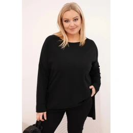 Dámská blůza Plus Size asymetrická s dlouhým rukávem černá