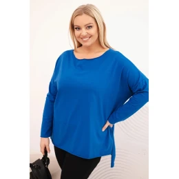 Dámská blůza Plus Size asymetrická s dlouhým rukávem chabrová