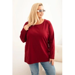 Dámská blůza Plus Size bavlněná s kulatým výstřihem bordová