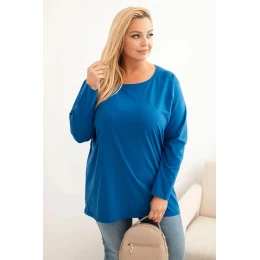 Dámská blůza Plus Size bavlněná s kulatým výstřihem chabrová
