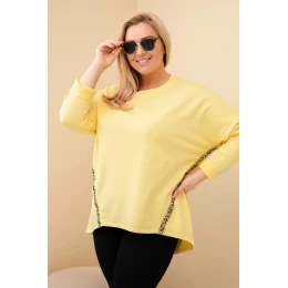 Dámská blůza Plus Size bavlněná s ohrnovacími rukávy a lampasem v leopardím vzoru žlutý