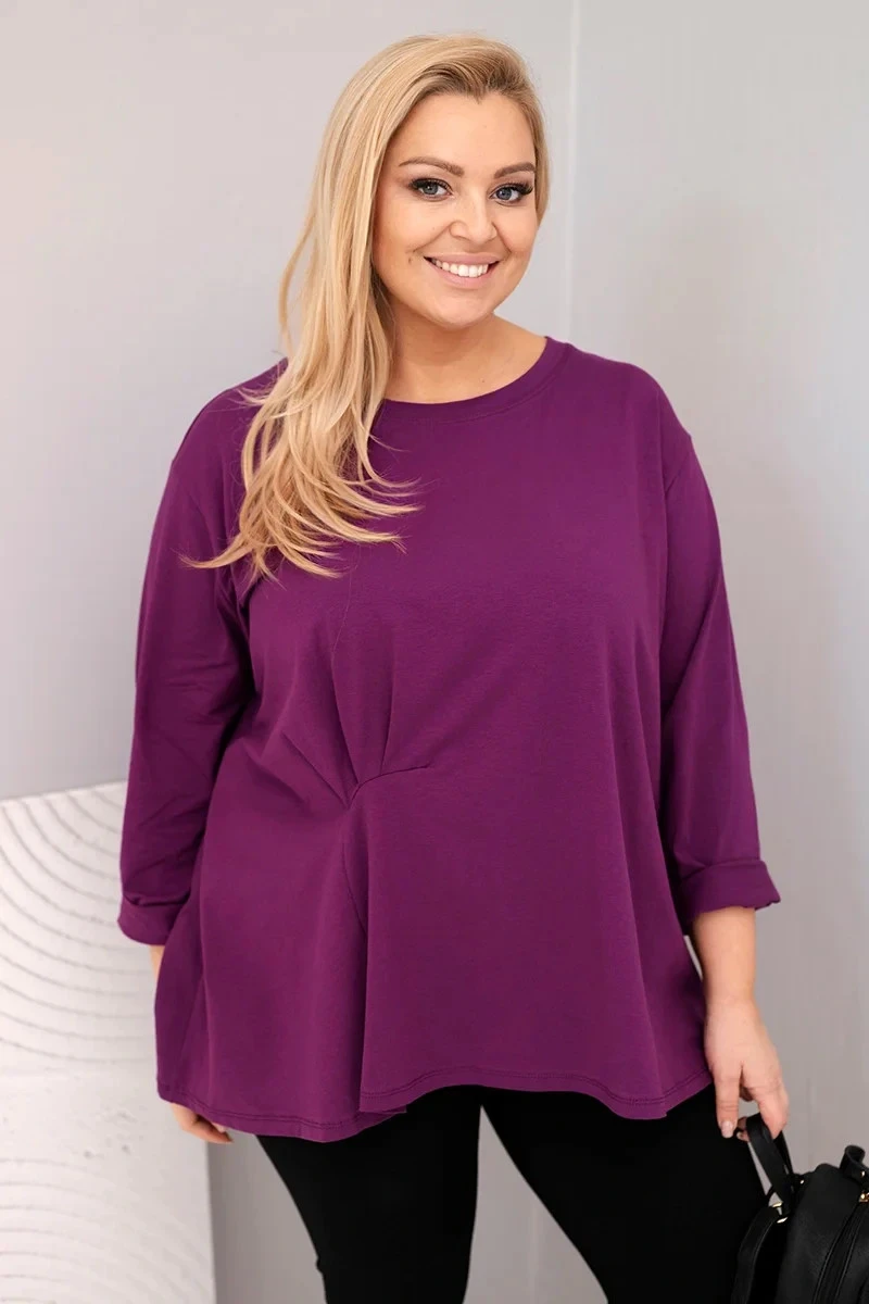 Dámská blůza plus size s bavlnou a dlouhým rukávem a nařasením tmavě fialová