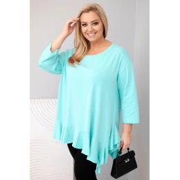 Dámská blůza Plus Size s bavlnou a volánem a ohrnovacími rukávy mátová