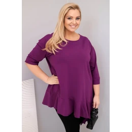 Dámská blůza Plus Size s bavlnou a volánem a ohrnovacími rukávy tmavě fialová