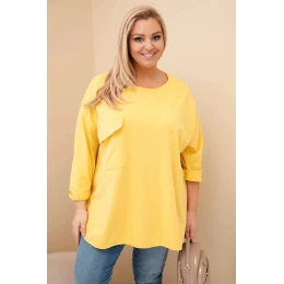 Dámská blůza Plus Size s bavlnou, kapsou a ohrnovacími rukávy žlutá