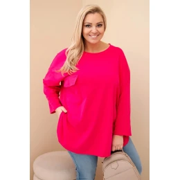 Dámská blůza Plus Size s bavlnou, kapsou a ohrnovaným rukávem fuchsie