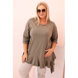 Tento dámský plus size top s bavlnou je výjimečný model, který spojuje pohodlí s módním, ženským akcentem. Ušitý z měkké a elastické bavlněné pleteniny, zajišťuje komfort nošení po celý den. Volný střih neobepíná postavu, a dekorativní volán na spodním okraji dodává topu lehkost a charakter.