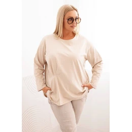 Dámská blůza Plus Size s bavlnou, kapsou a ohrnutým rukávem kiwi