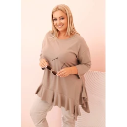 Tento dámský plus size top s bavlnou je výjimečný model, který spojuje pohodlí s módním, ženským akcentem. Ušitý z měkké a elastické bavlněné pleteniny, zajišťuje komfort nošení po celý den. Volný střih neobepíná postavu, a dekorativní volán na spodním okraji dodává topu lehkost a charakter.