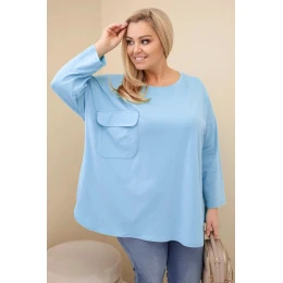 Dámská blůza Plus Size s bavlnou, s kapsou a ohrnovacími rukávy modrá
