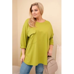 Dámská blůza Plus Size s bavlnou, kapsou a ohrnutým rukávem olivová