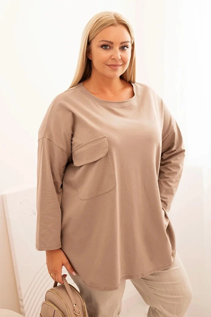 Dámská blůza Plus Size s bavlnou, s kapsou a ohrnovacími rukávy fango