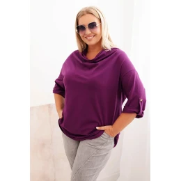 Dámská blůza Plus Size s bavlnou volného střihu s vodním výstřihem tmavě fialová