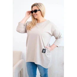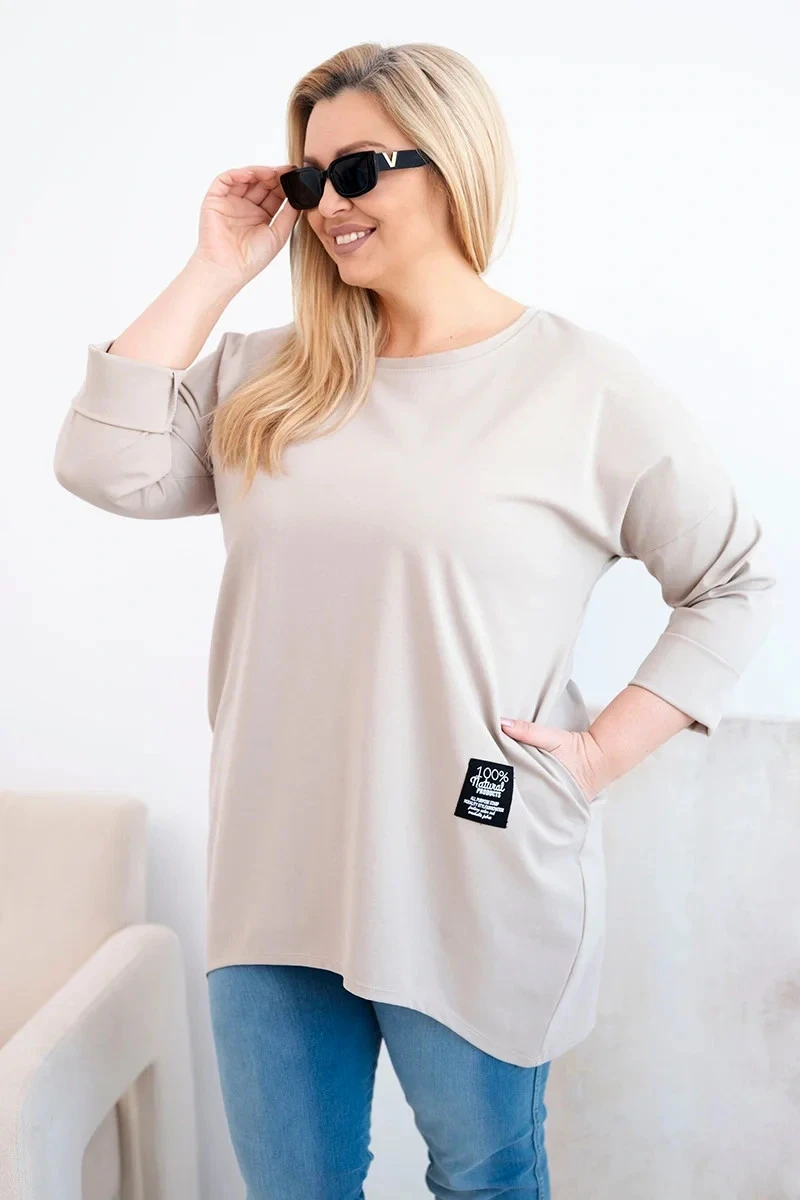 Dámská blůza Plus Size s delším zadním dílem a dlouhým rukávem tmavě béžová