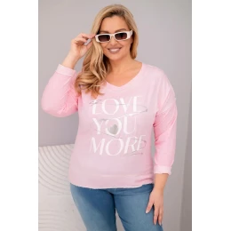 Dámská blůza Plus Size s nápisem Love You More světle růžová