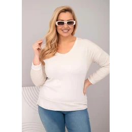 Dámská blůza Plus Size s V výstřihem a delším zadním dílem béžová