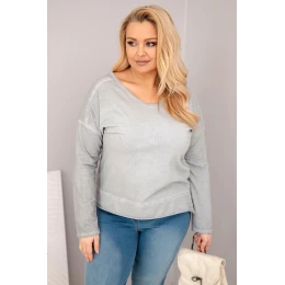 Dámská blůza Plus Size s V výstřihem a delším zadním dílem šedá