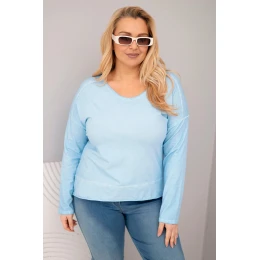 Dámská blůza Plus Size s výstřihem do V a delším zadním dílem modrá