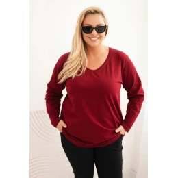 Dámská blůza Plus Size s výstřihem do V a dlouhým rukávem bordó
