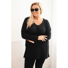 Dámská blůza Plus Size s výstřihem do V a dlouhým rukávem černá