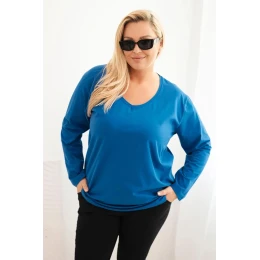 Dámská blůza Plus Size s výstřihem do V a dlouhým rukávem chabrová