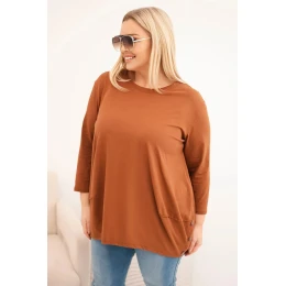 Dámská blůza Plus Size z bavlny s ozdobnými knoflíky a ohrnovacími rukávy camelová