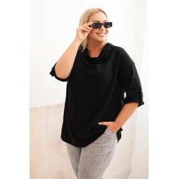 Dámská blůza Plus Size z bavlny s volným střihem a vodním výstřihem černá