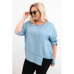 Dámská blůza Plus Size z lyocellu s asymetrickým lemem světle džínová