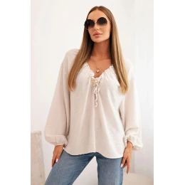 Dámská blůza s viskózou, s nařaseným výstřihem a ozdobou béžová