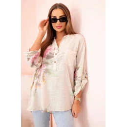 Dámská blůza z bavlny s květinovým vzorem a knoflíky béžový