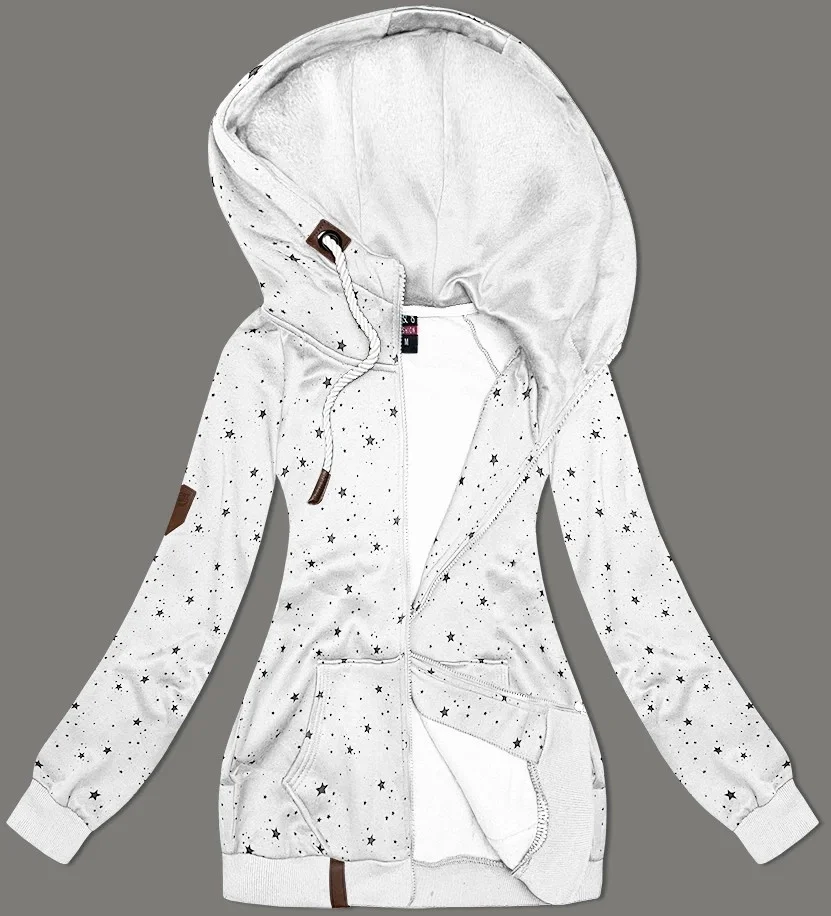 Světle šedá dámská mikina s kapucí a se vzorem hvězdiček (2305)