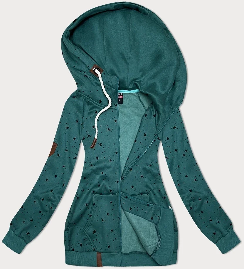 Zelená dámská mikina s kapucí a se vzorem hvězdiček (2305)