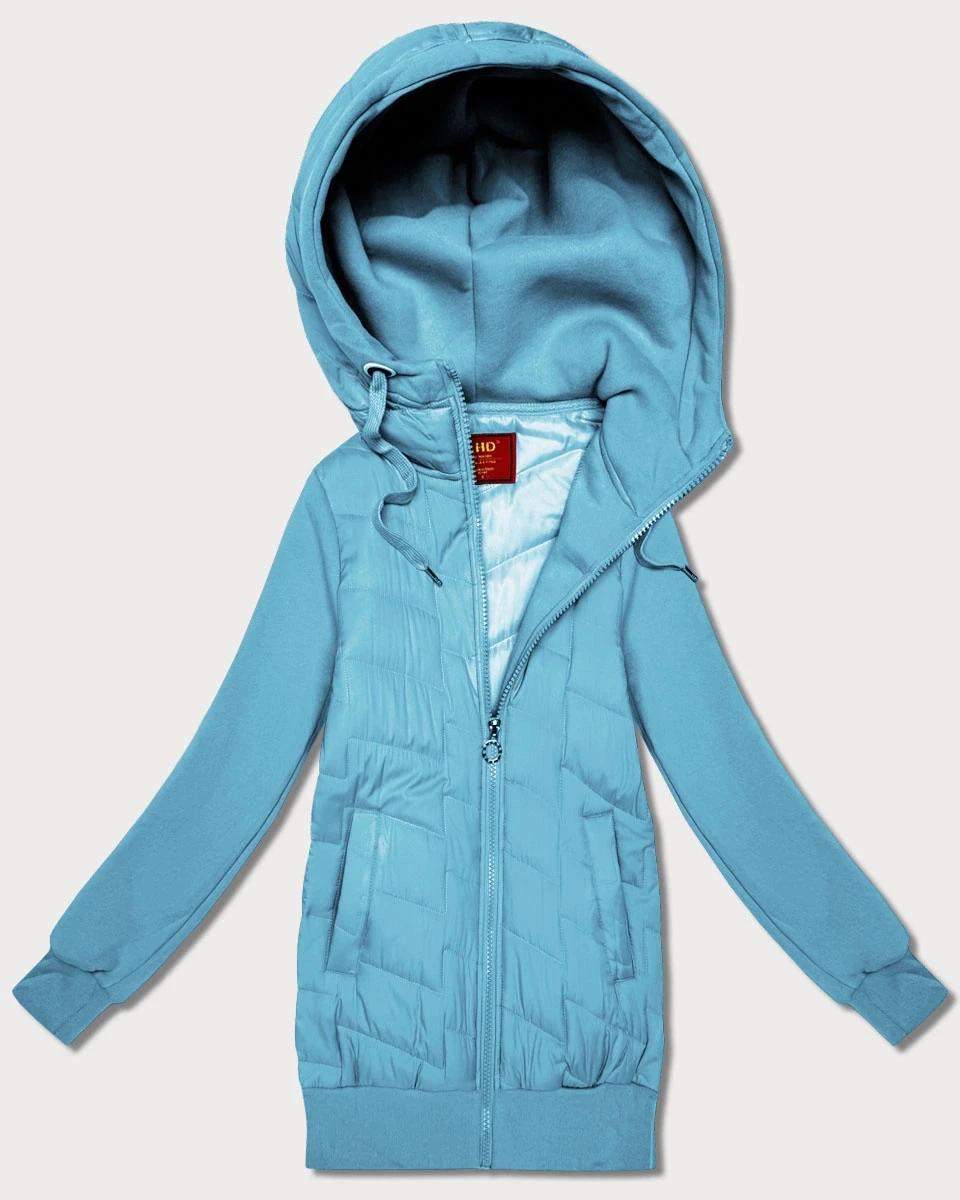 Světle modrá dámská mikina z různých materiálů s kapucí Goodlookin (AMG-175)