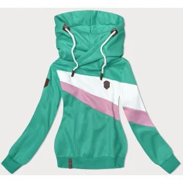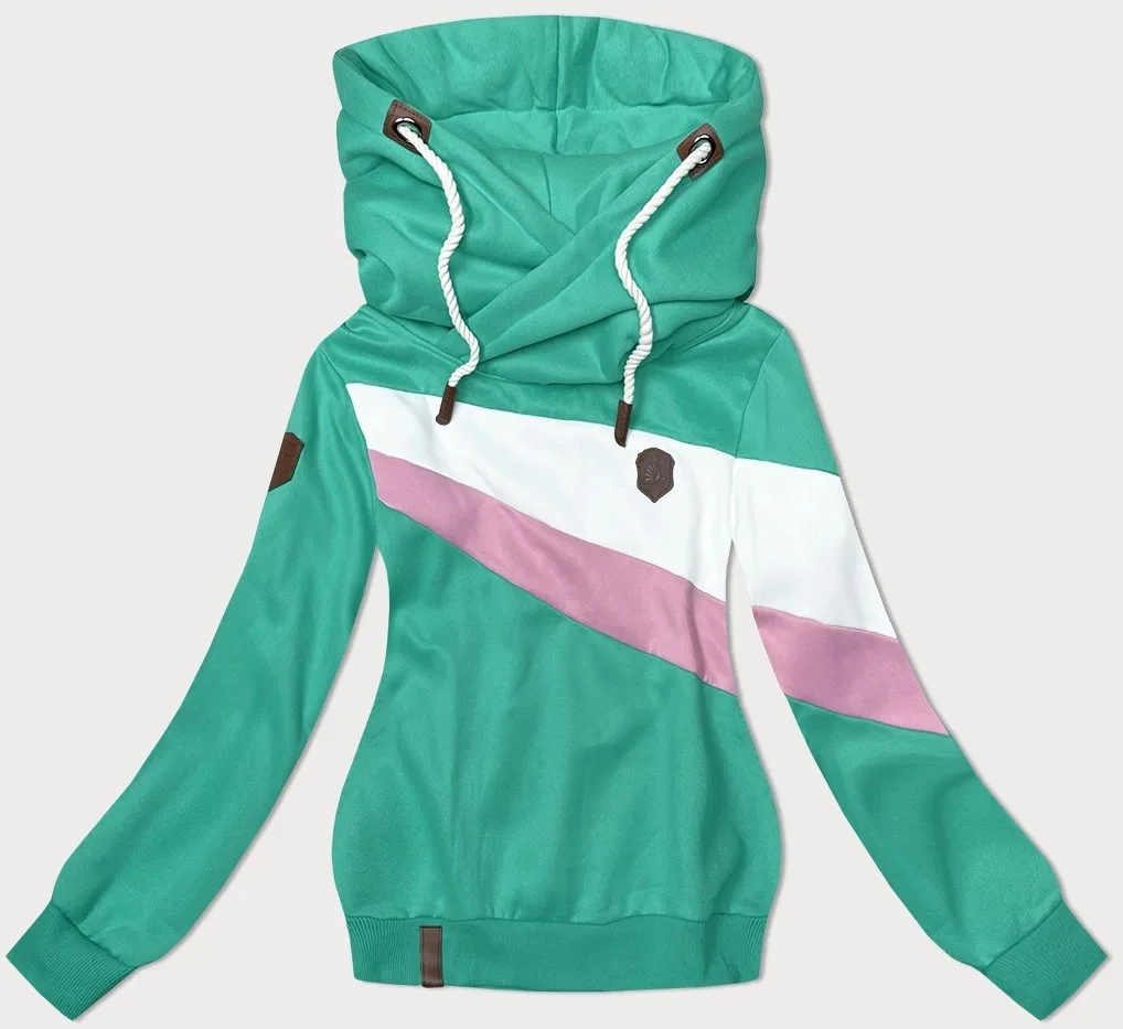 Mikina má jednoduchý střih, přeložený obálkový výstřih a obléká se přes hlavu. Uvnitř modelu je příjemný mechovitý kožíšek. Rukávy a spodní okraj mikiny jsou olemované stahovacími lemy. Model má délku k bokům.