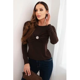 Dámská blůza z viskózy přiléhavá s drapováním a broží hnědá