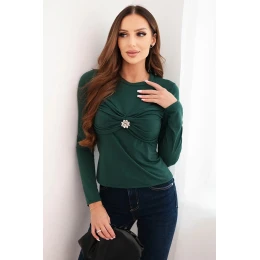 Dámská blůza z viskózy přiléhavá s nařasením a broží tmavě zelená