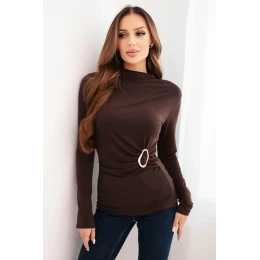 Dámská blůza z viskózy s nařasením a ozdobnou sponou hnědá