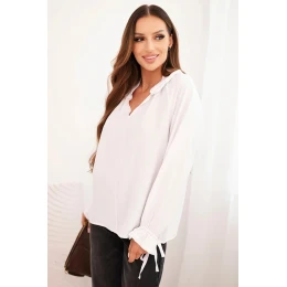 Dámská blůza z viskózy s V výstřihem a zavazováním u rukávů bílá