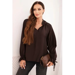 Dámská blůza z viskózy tmavě hnědá - FPrice