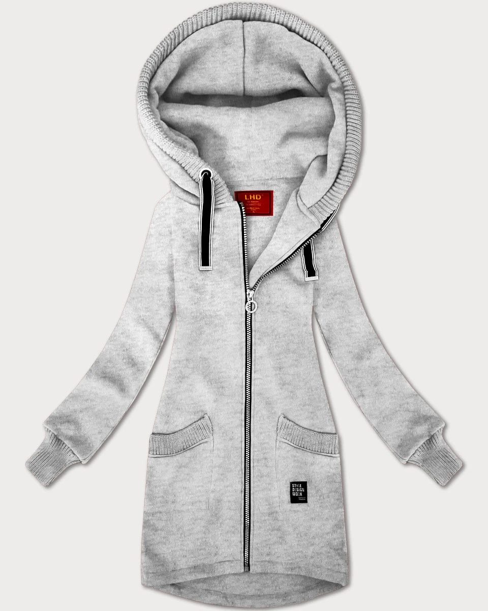 Světle šedá dámská mikina se svetrovými vsadkami LHD (AMG-172A)