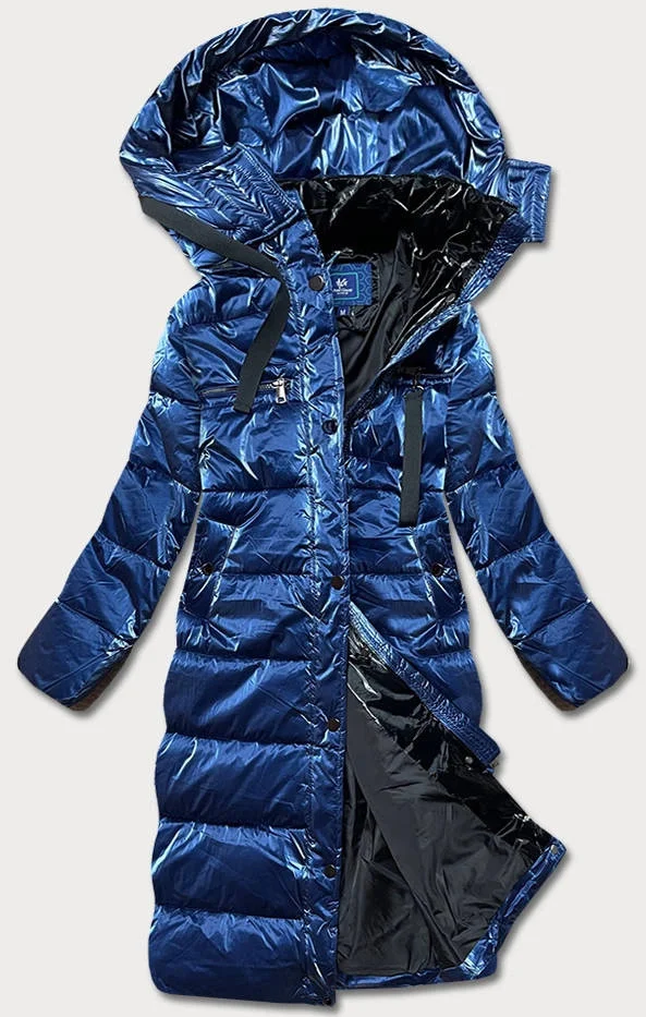 Tmavě modrá dámská lesklá péřová bunda (omdl-020)