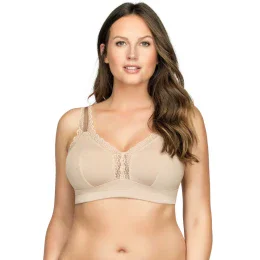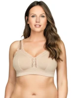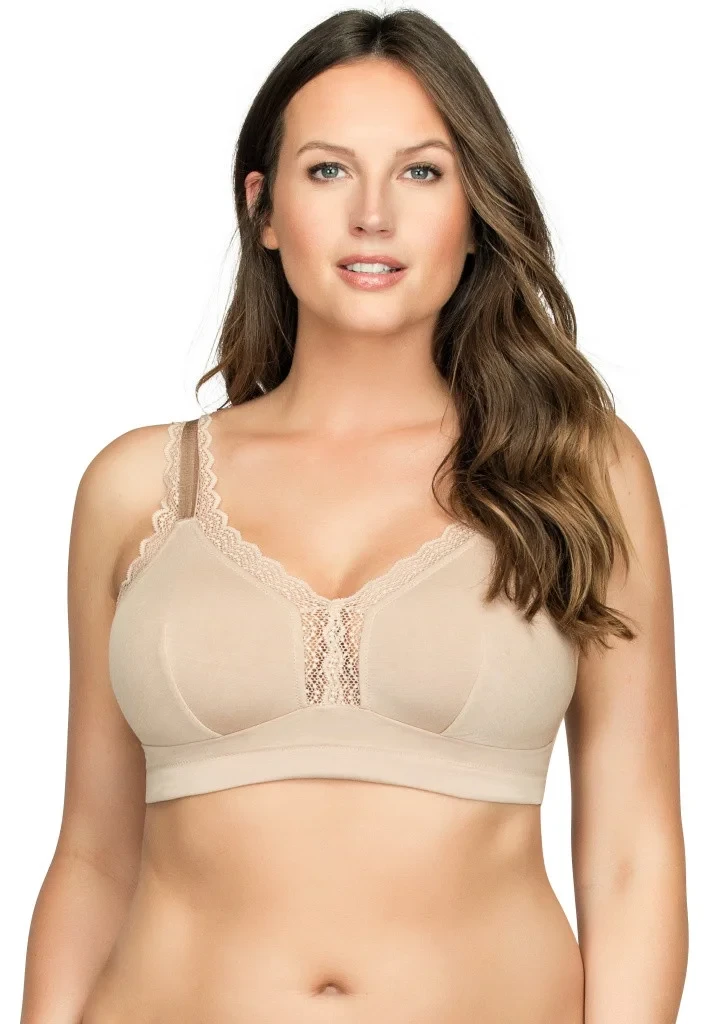 Dámská bezkosticová braletka od britské značky Parfait specializující se na ženy s velikostí D+. Podprsenka je vyrobena z velkého podílu modalu s příměsí elastanu a tím využívá vlastnosti, jako je dokonalá jemnost, pružnost, stálobarevnost i po několikanásobném praní, vysokou odolnost a pod. Má velmi dobrou nasáklivost a schopnost rychle odvádět pot od povrchu těla, což přispává k příjemným pocitům při nošení. Braletka má krajkové obvody kolem košíčků, které přecházejí až k ramenům. Ramínka jsou lehce délkově nastavitelná, v zadní části se dají ramínka zkřížit pomocí háčku na sponách. Obvod zpevňují pružné boční kostice. Obvod je ukončen po spodním obvodu všitou gumičkou. Zadní zapínání je na čtyři háčky a tři pozice. Podprsenka je velmi příjemná na těle ve sportovně-elagantním designu a je vhodná na každodenní nošení při zachování komfortu každé ženy.