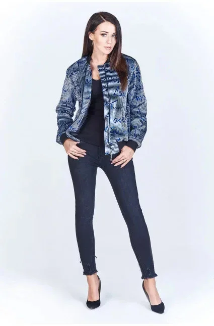 Dámská bunda z kolekce jaro/léto 2017. Bunda v sobě skrývá efektní vzhled a sportovní pohodlí. Má krátký, vypasovaný střih, který je podtržen stylovým prošíváním. Bunda má dlouhé rukávy a výstřih se stojáčkem. Modelka na obrázku měří 172 cm a předvádí model ve vel. 36