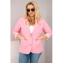 2. Dámská bunda Plus Size prošívaná květinami s límcem a kapsami jasně růžová